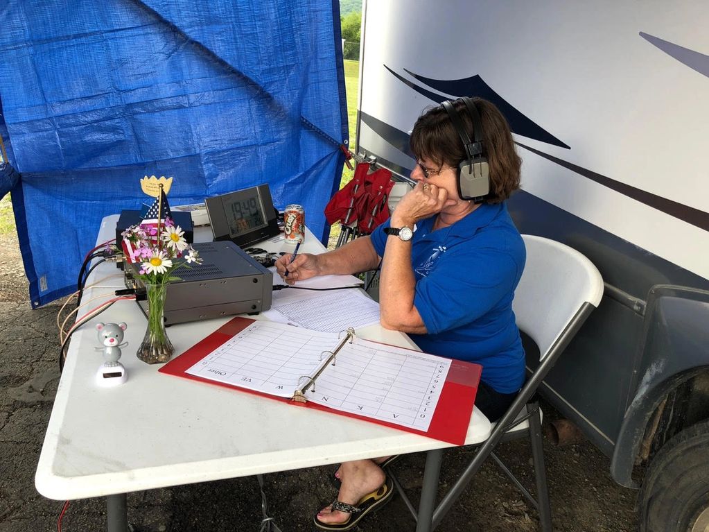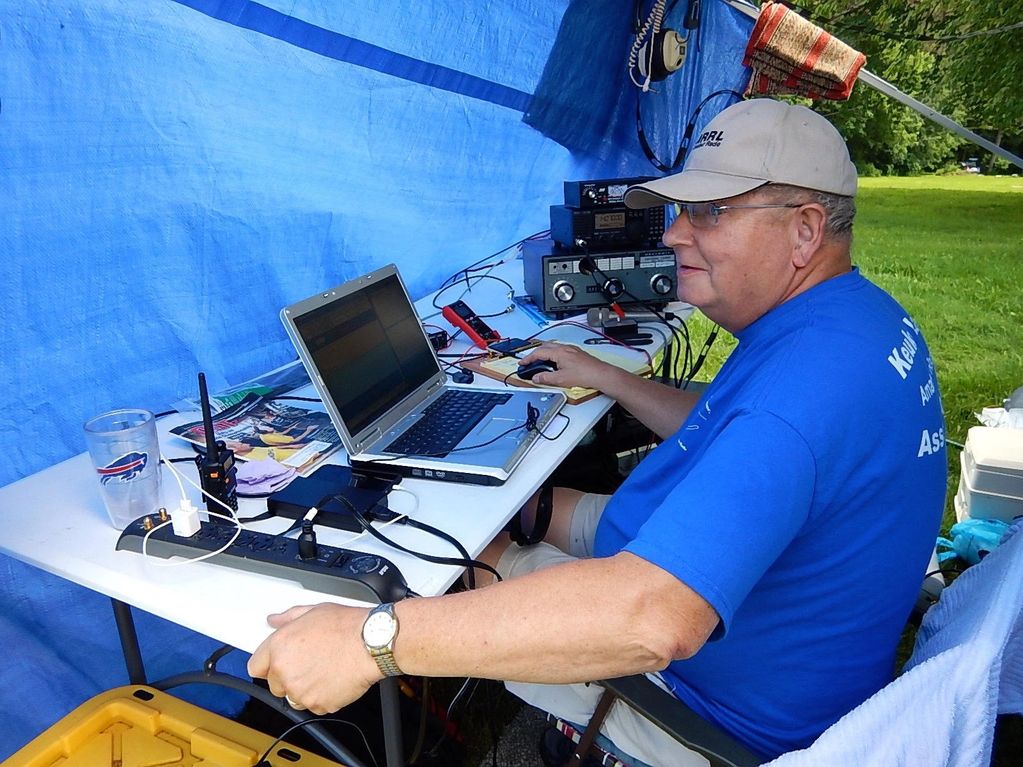 KLARA Field Day 2019 at the Civil Defense and Fire Training Center located in Bath, NY One of our helpers getting wound up in all the excitement.